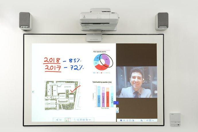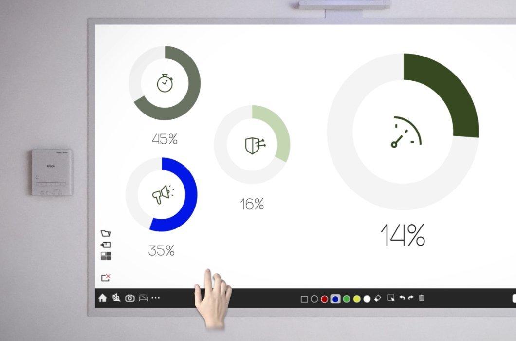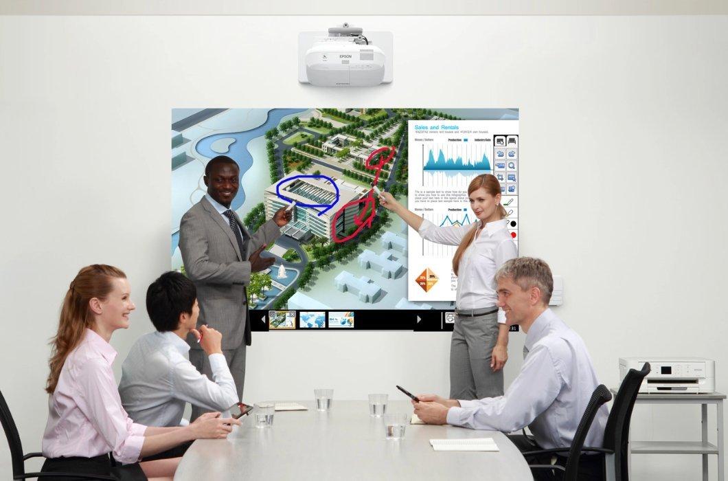 De vergaderoplossingen van Epson geven iedereen de middelen in handen om contact te maken, informatie te delen en snel en eenvoudig deel te nemen aan vergaderingen. De manier waarop we op het werk interacties aangaan verandert. We omarmen de nieuwe technologieën om iedereen eenvoudige toegang te bieden tot vergaderingen, of dat nu via fysieke aanwezigheid is of via het netwerk vanaf externe locaties, zodat iedereen betrokken kan zijn bij real-time interactieve discussies die informeren en motiveren. Sprekers kunnen content aanduiden dankzij de touchinteractiviteit met vinger en dubbele pen terwijl content en schermen eenvoudig kunnen worden gedeeld vanaf smartphones, tablets en laptops.