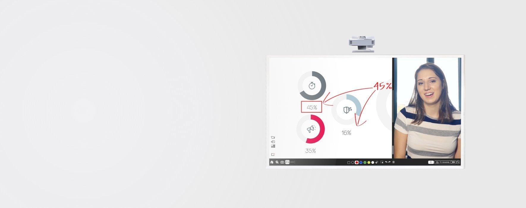 Geef prioriteit aan productiviteit, samenwerking en apparaatintegratie en maak het delen van whiteboards en andere content mogelijk door middel van draadloze connectiviteit en annotatie op afstand vanaf smartphones, tablets en laptops. Deel content eenvoudig via schermspiegeling.